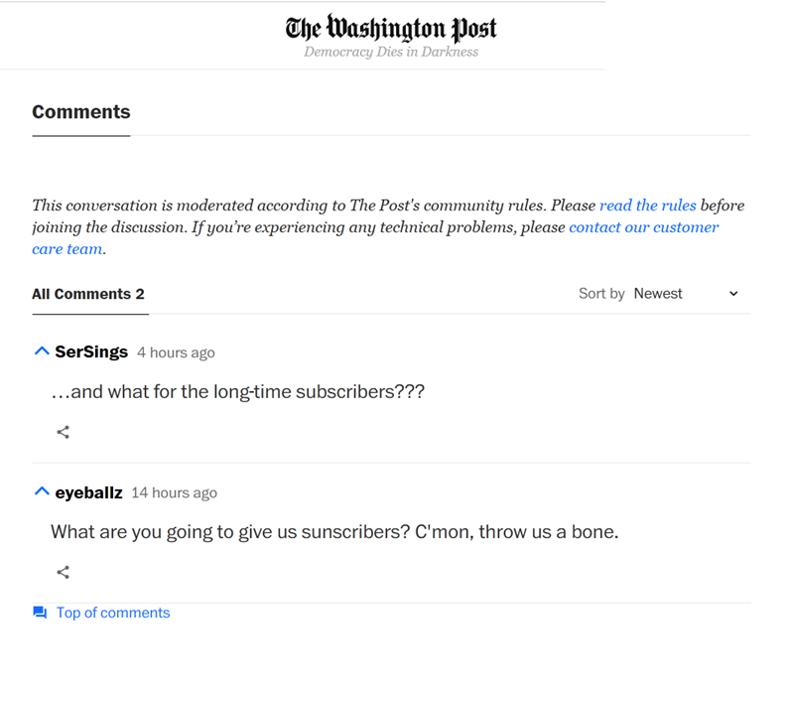 You know who’s not oblivious? The 2,500,000 people who pay $40 to $120 per year to subscribe to the Washington Post. Yes, pay. They’re not happy.